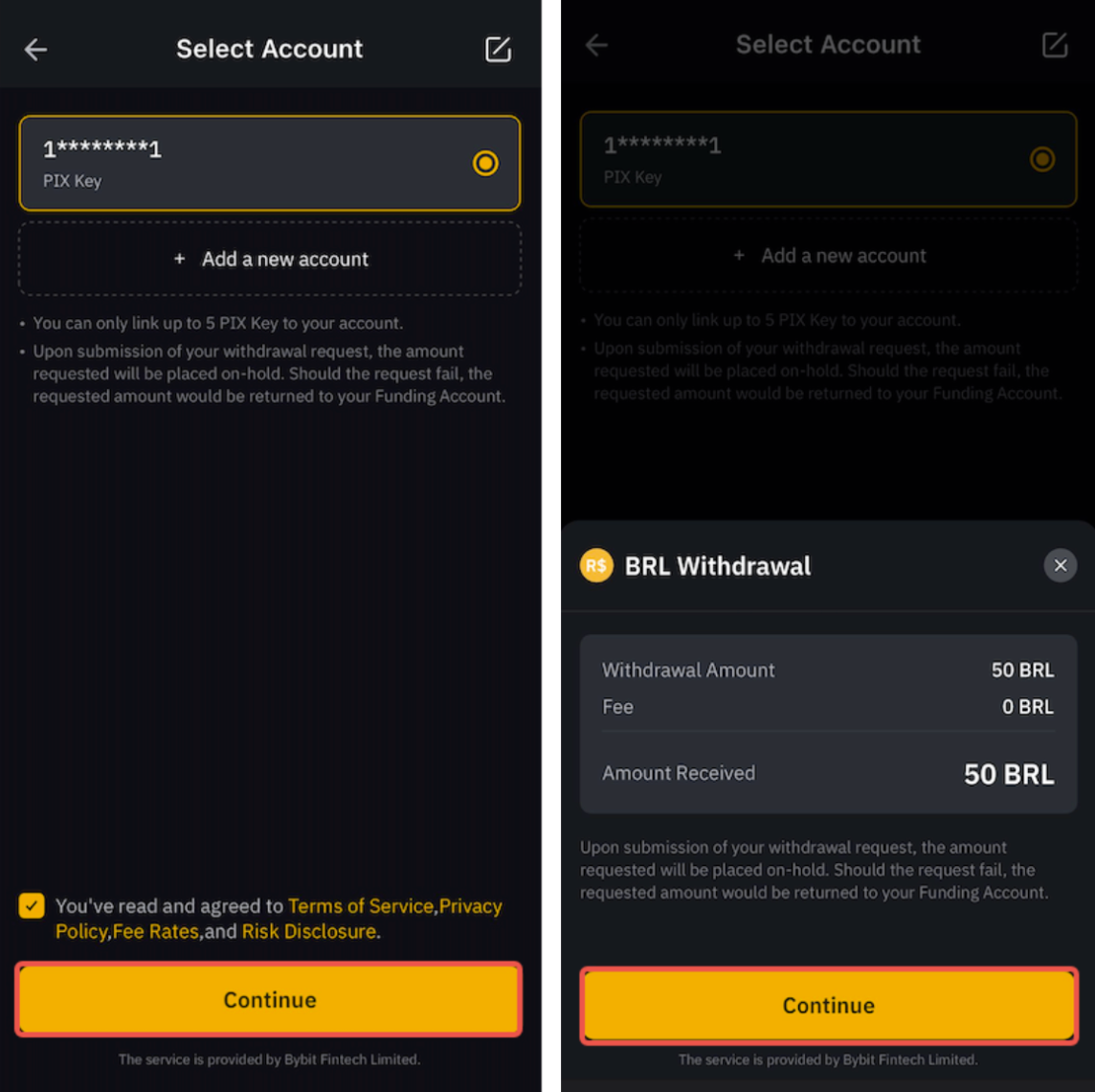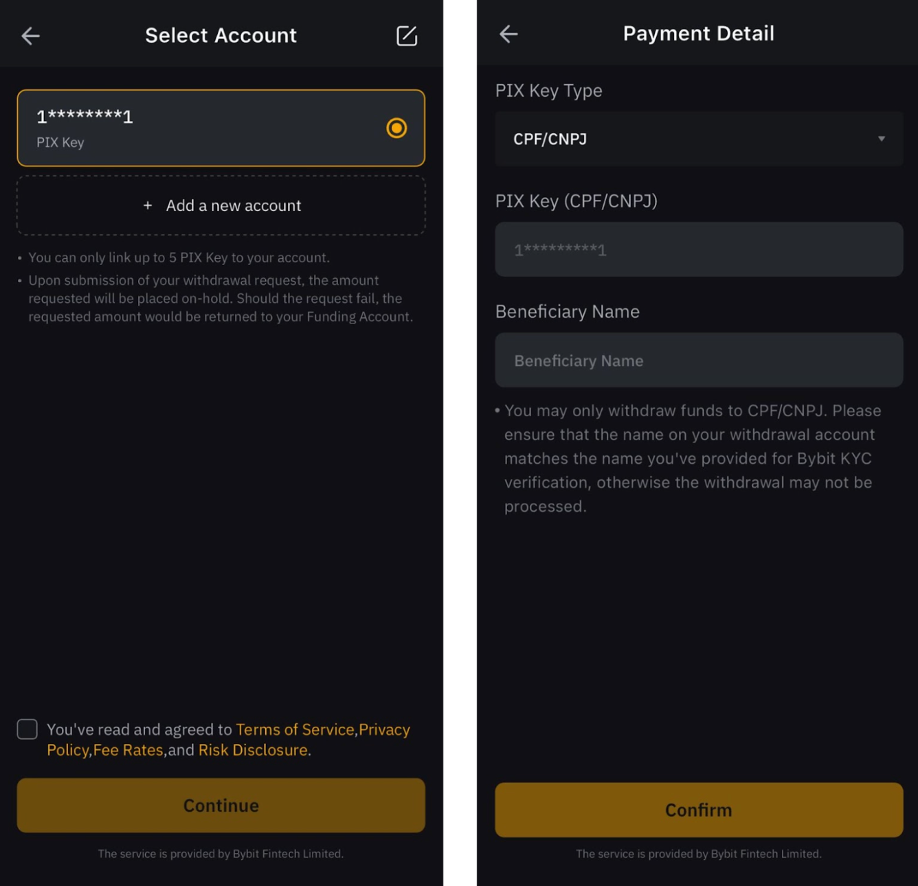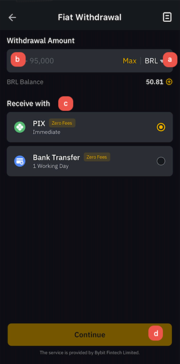 Step 3: If you have previously deposited fiat currencies to your account, Bybit will automatically link this account for withdrawal.