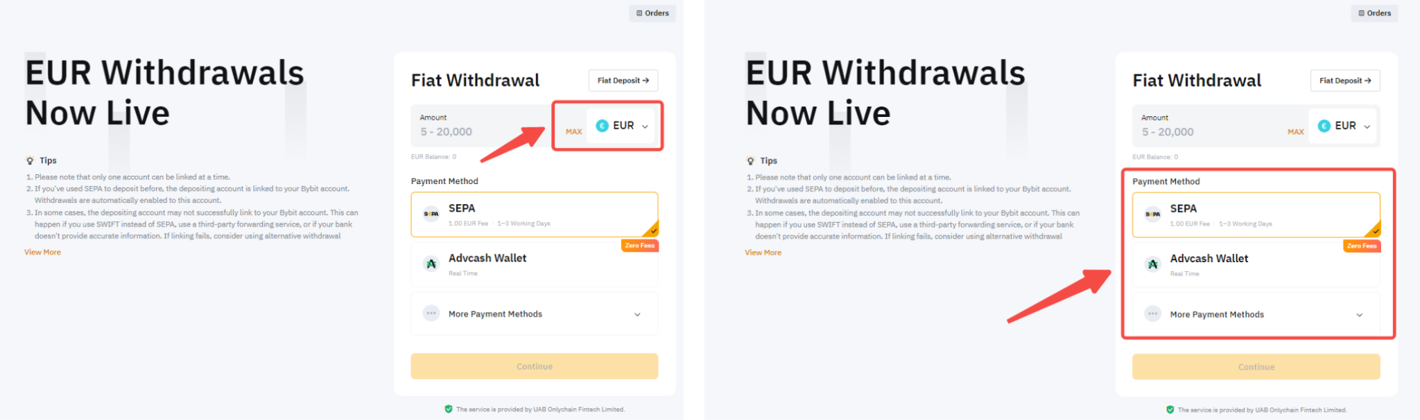 3. Please note that the number of withdrawal accounts that can be added for each fiat currency varies according to the payment method. You can find more details in this FAQ.
