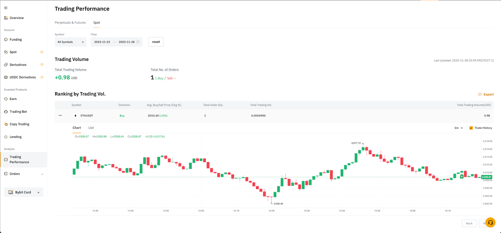 Total Trading Volume | The total trading volume for the corresponding Spot trading pair during the selected period. |