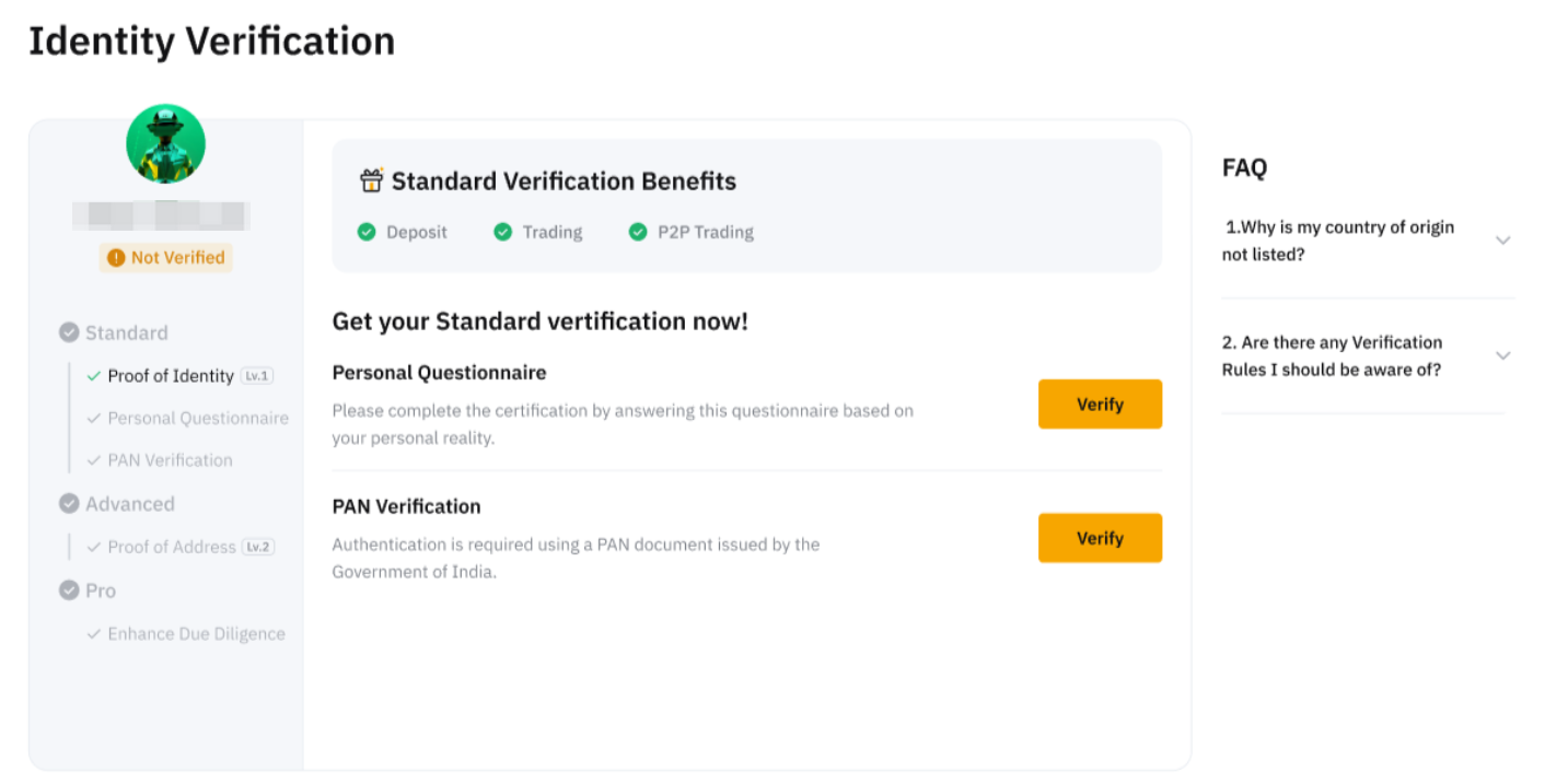 In addition, Indian citizens will need to complete a set of personal questionnaires and Permanent Account Number (PAN) verification as part of the Standard Verification process.