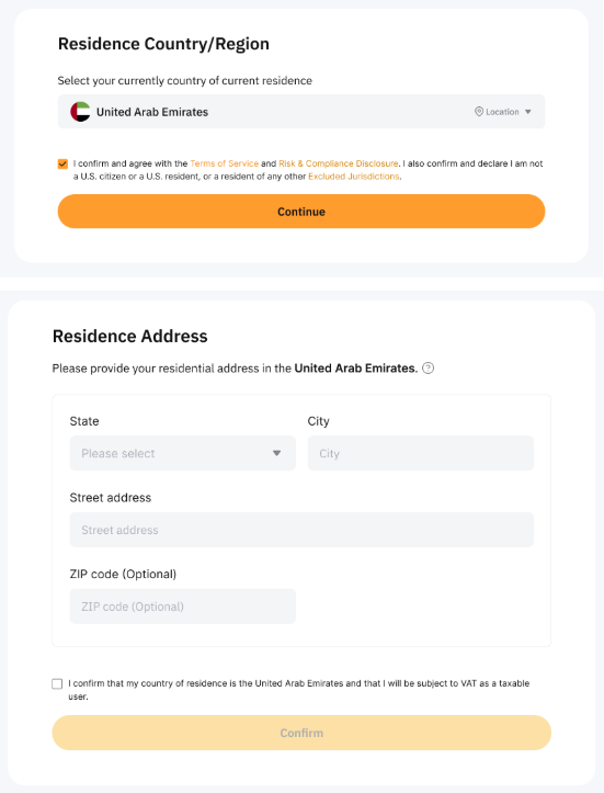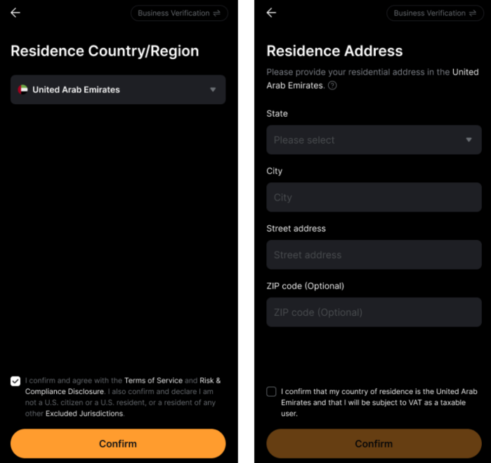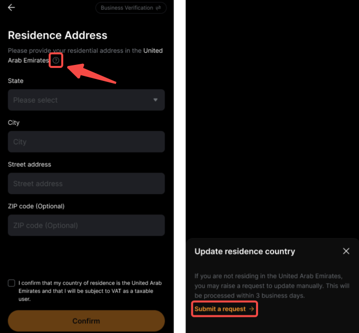 Residents of the United Arab Emirates are required to provide their residential address before proceeding with Proof of Identity (POI) verification. Please refer to the verification process below.