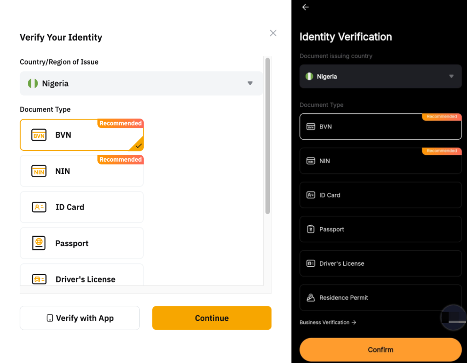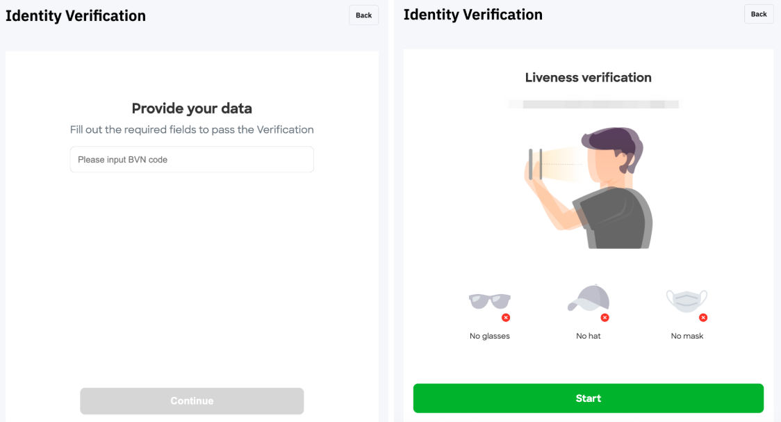 Two (2) local document verification types are supported for Nigerian residents: Bank Verification Number (BVN) and National Identification Number (NIN).