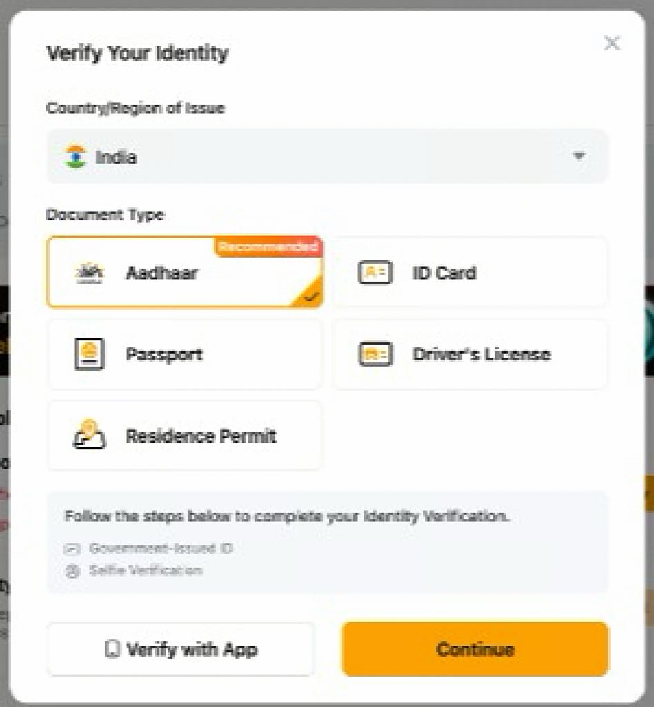 Indian residents can complete the identity verification using their Aadhaar Number.