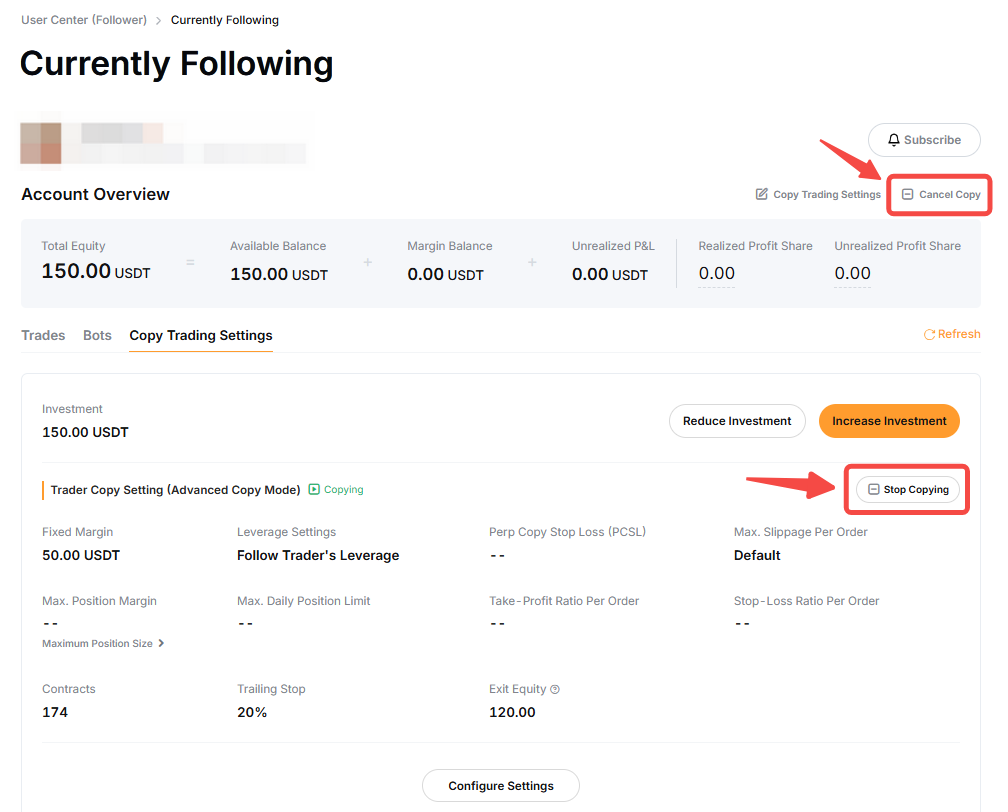 You can adjust the parameters of your copy trade by following the steps below.
