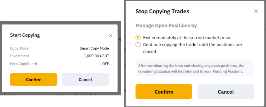 2. Continue copying the trader until the positions are closed. During this time, only the closing signal from Master Trader to that position will be copied. Any new orders or changes made to the position by Master Trader will not be copied.