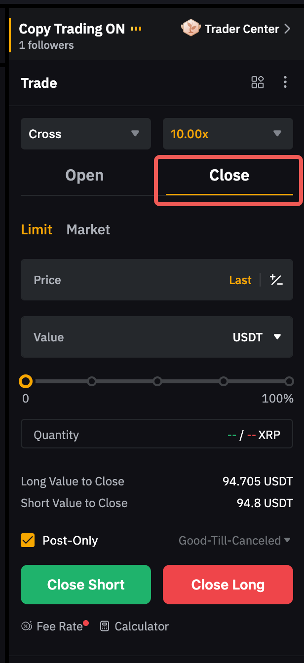 Note: If the Master Trader‘s position in a trading pair is liquidated, all positions in the corresponding trading pair in the same direction of Followers will also be closed.
