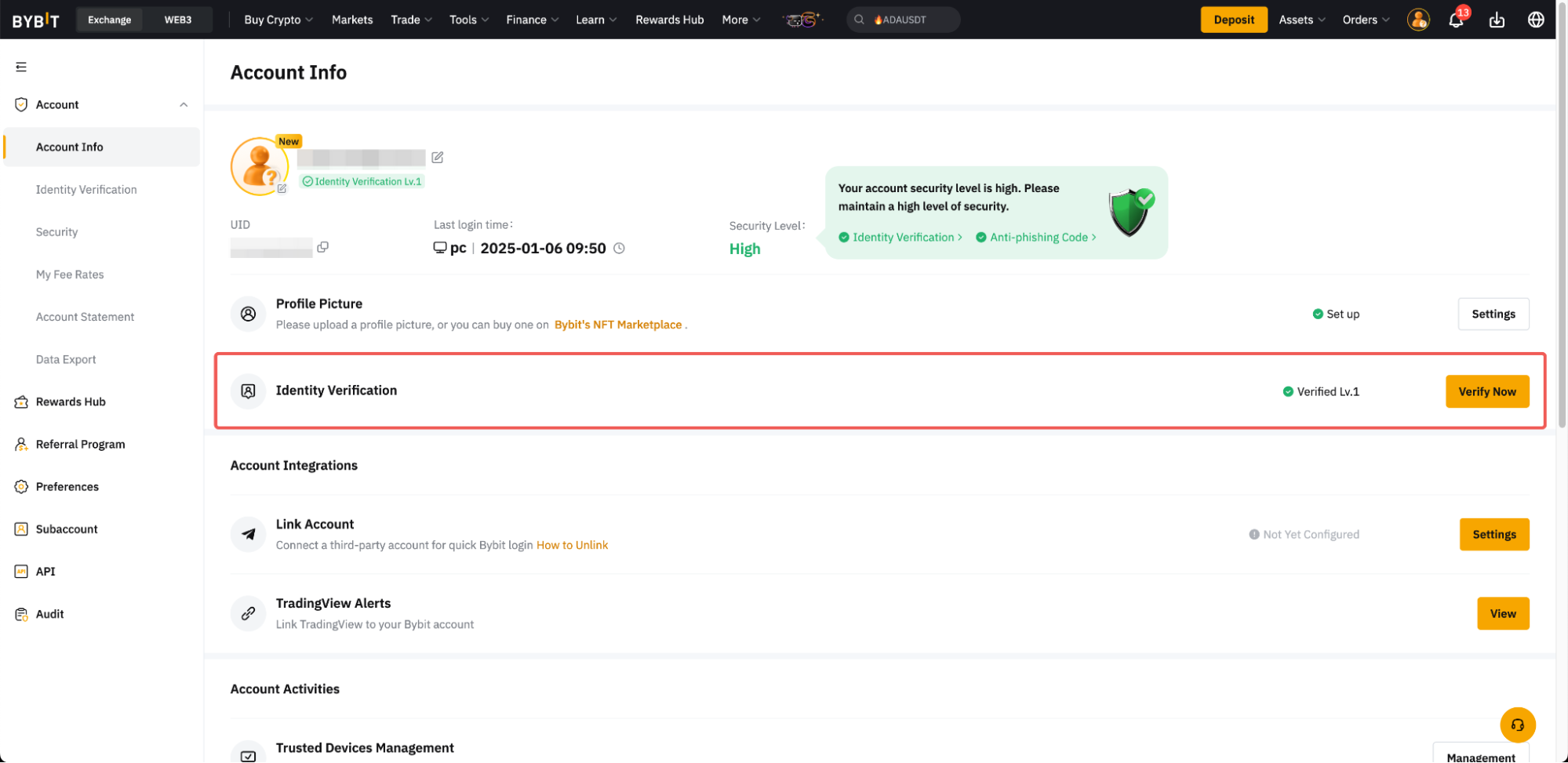 For Bybit card holders, it is advised to terminate your Bybit card through the card management page before proceeding with the identity transfer. For more information please consult the Bybit Card FAQ.