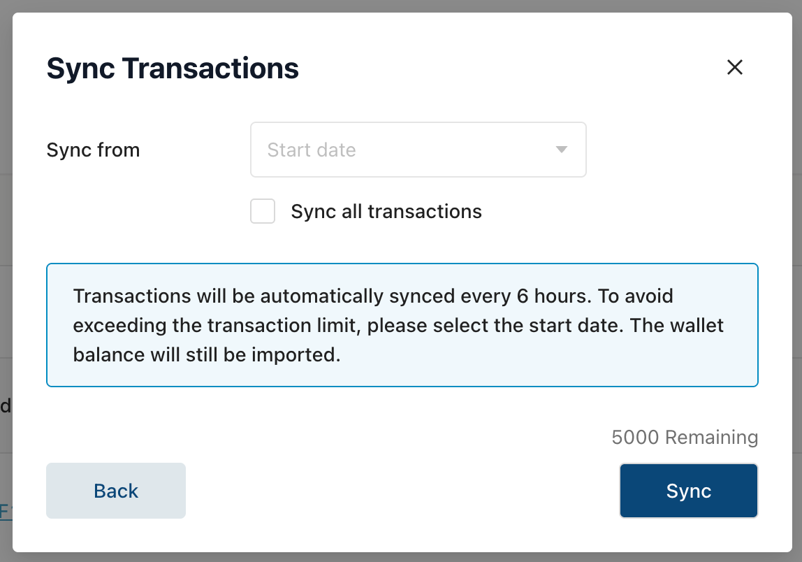 Step 7: Once connected, Journaler will ask you which wallets to connect and let you choose a start date.