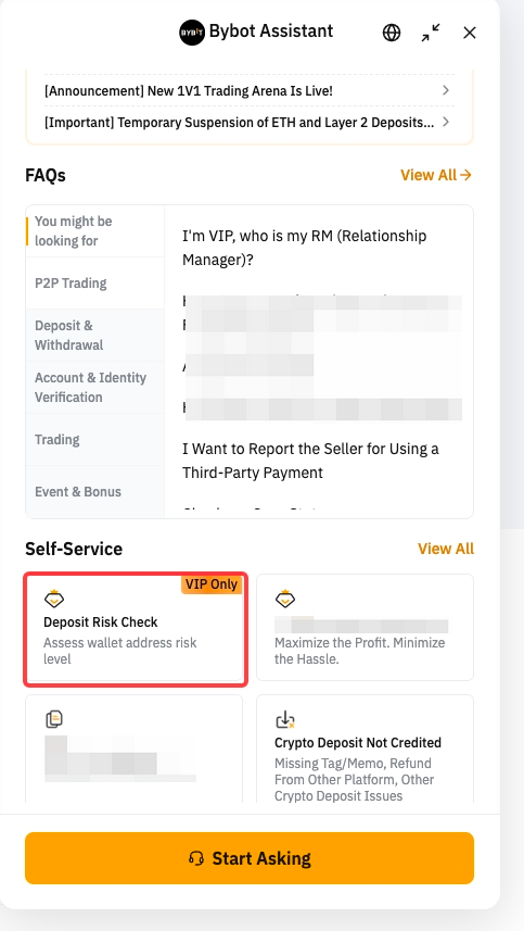 If you have accessed the risk assessment feature via the Support page, please ensure to enter your wallet address accurately and select the corresponding Blockchain type in order to proceed with the verification.