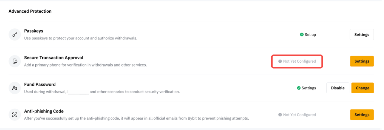 La aprobación segura de transacciones solo se puede activar a través de la aplicación de Bybit. Sigue los pasos indicados a continuación: