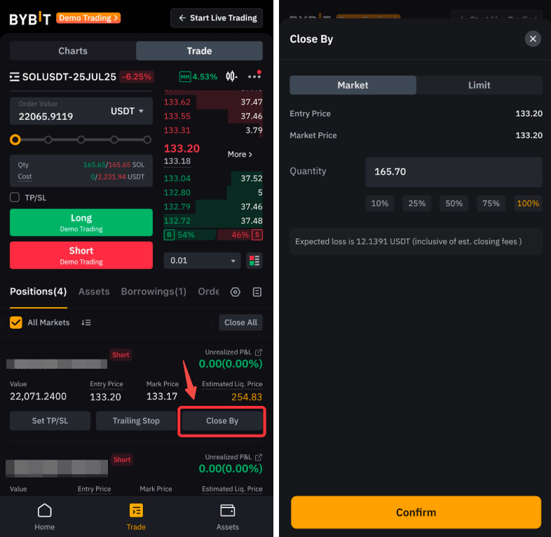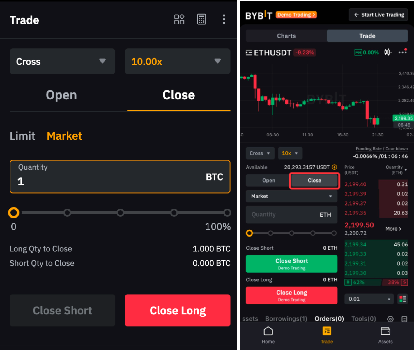 Por ejemplo, para cerrar una posición larga de 1 BTC, coloca una orden de mercado corta de 1 BTC. Ten en cuenta que si la cantidad del pedido supera el tamaño de tu posición actual, se puede abrir una nueva posición en la dirección opuesta.