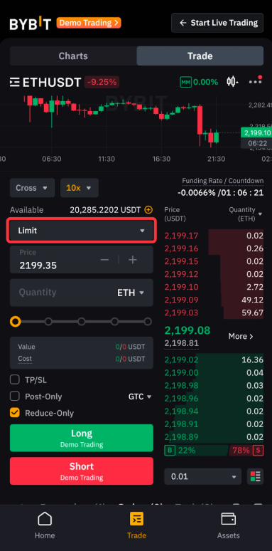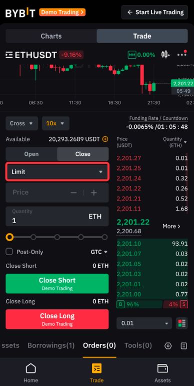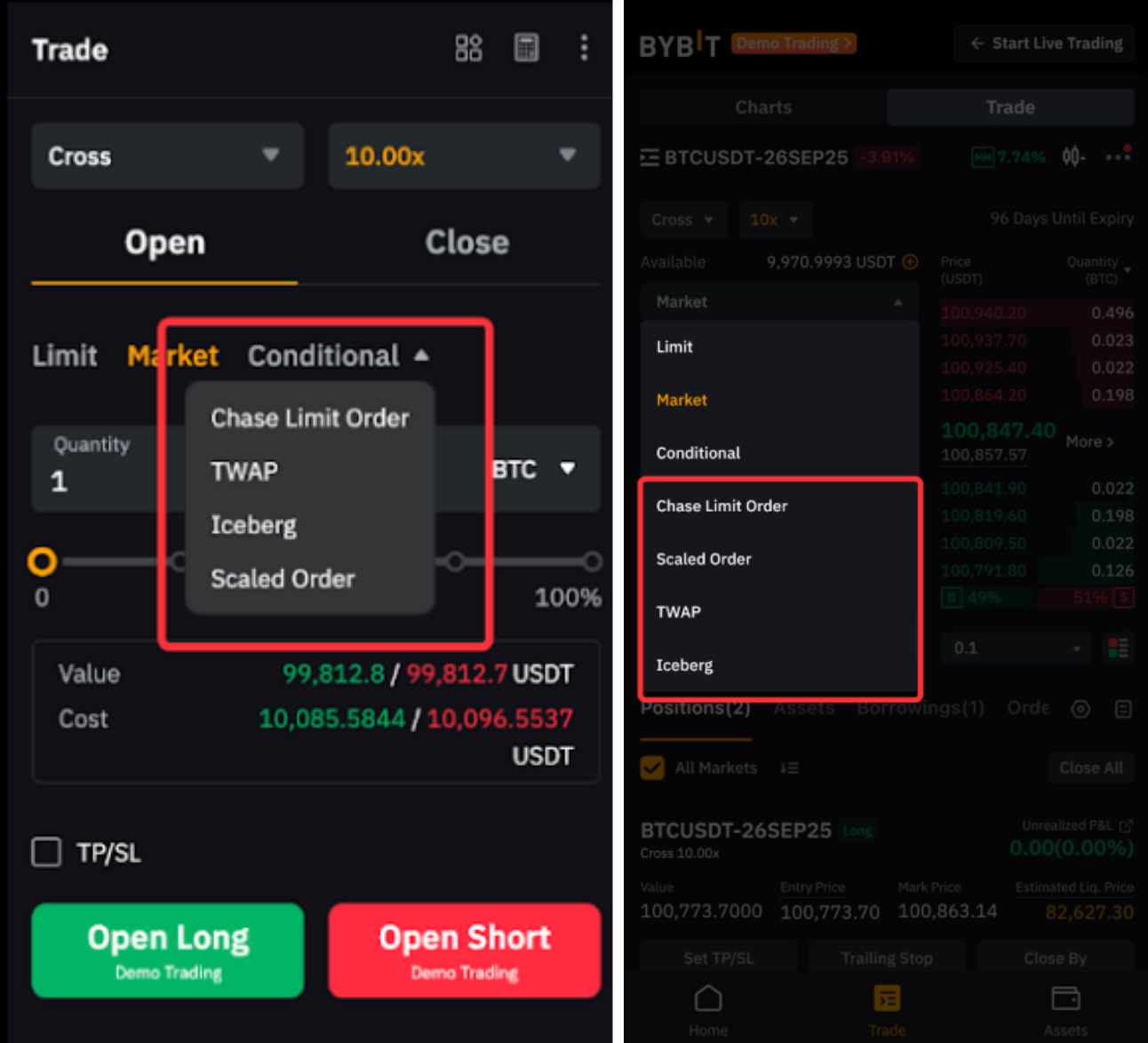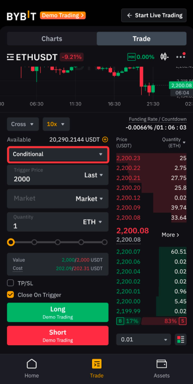 Para obtener más información sobre la diferencia entre órdenes con límite y condicionales, consulta el artículo Tipos de órdenes disponibles en Bybit.