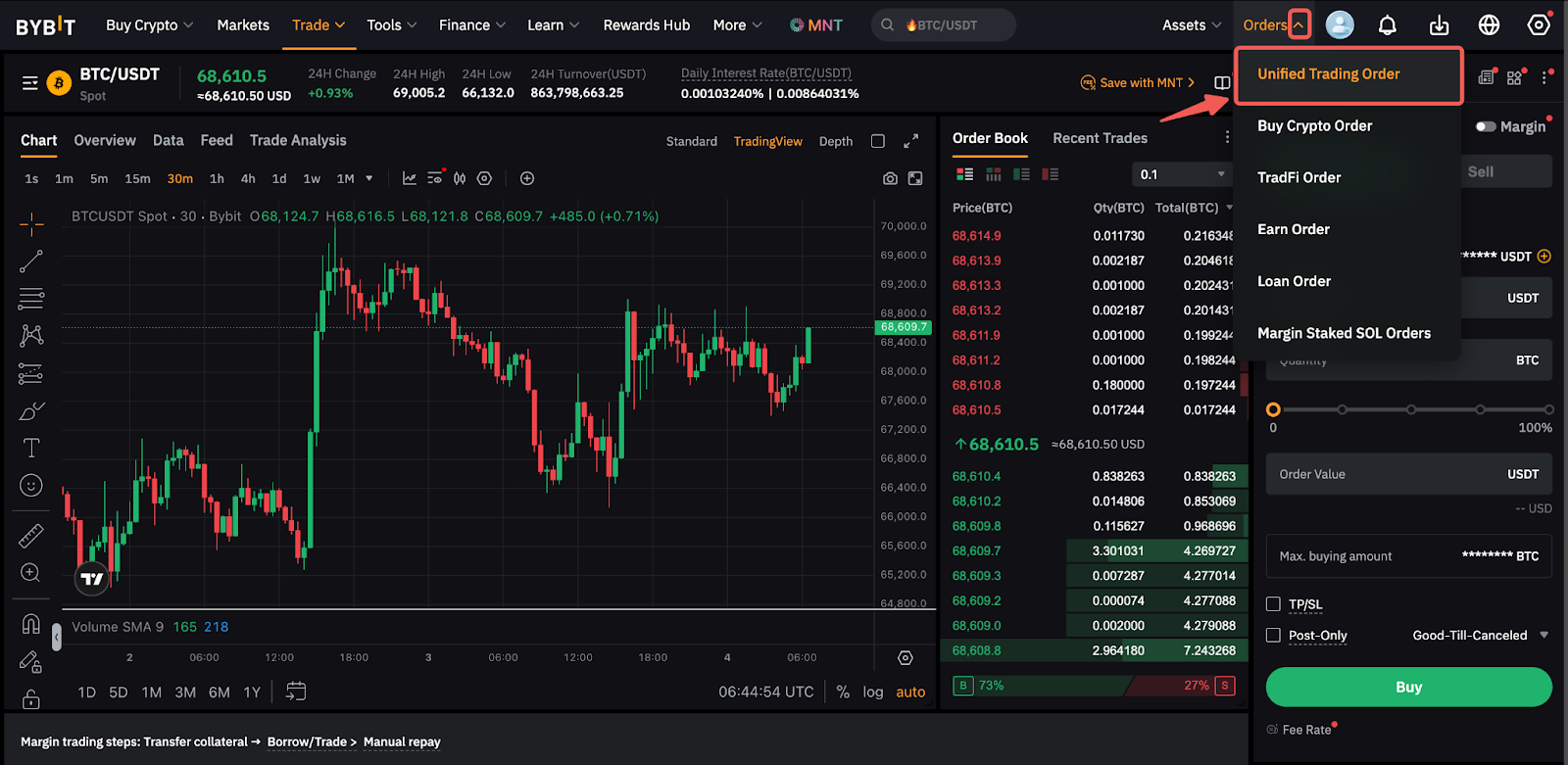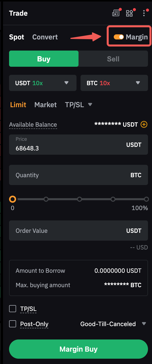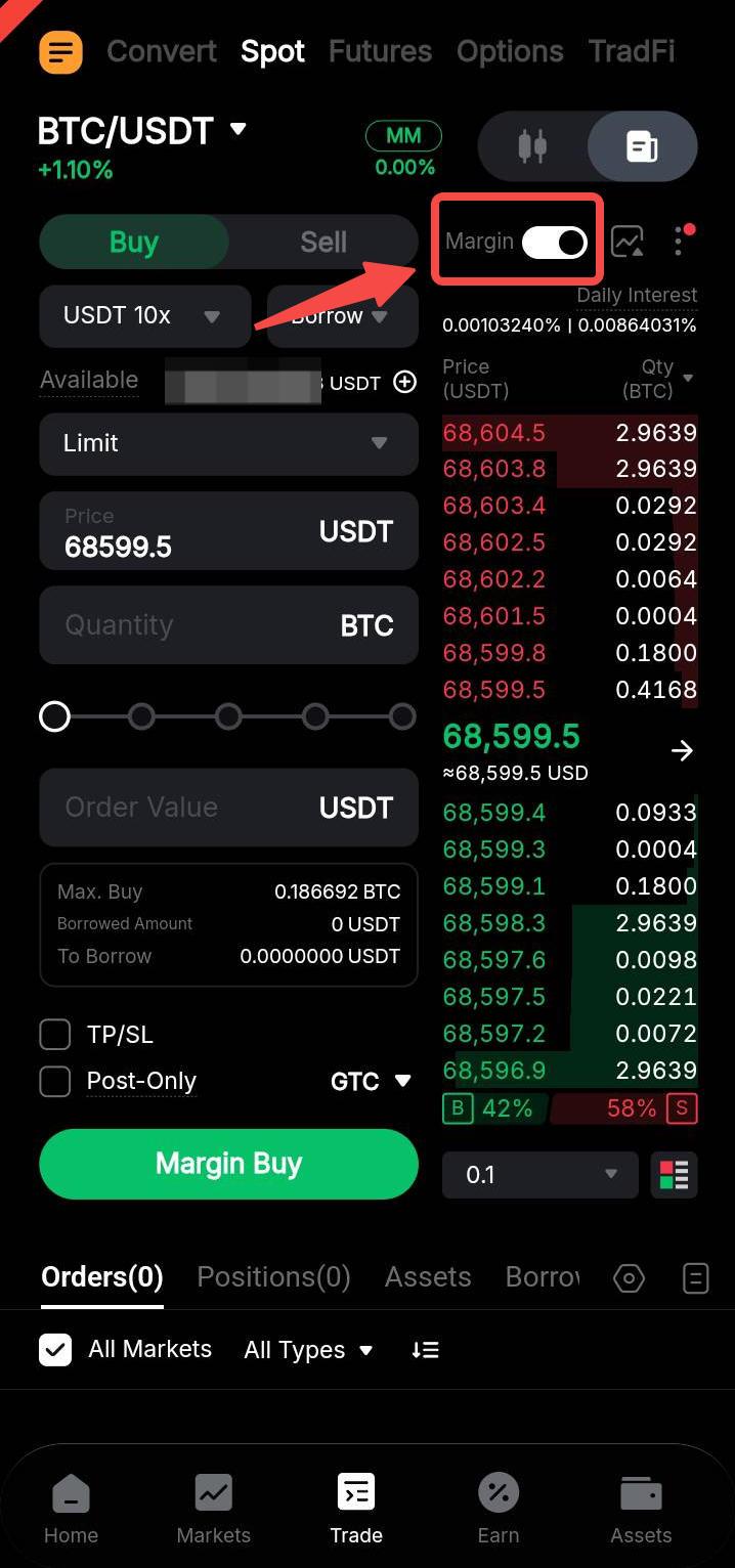 Ya, meminjam dana untuk berdagang di pasar Spot dimungkinkan melalui fitur Perdagangan Margin Spot di bawah Mode Margin Silang atau Portofolio. Anda dapat mengaktifkan ini dengan mengalihkan tombol Margin di zona order.