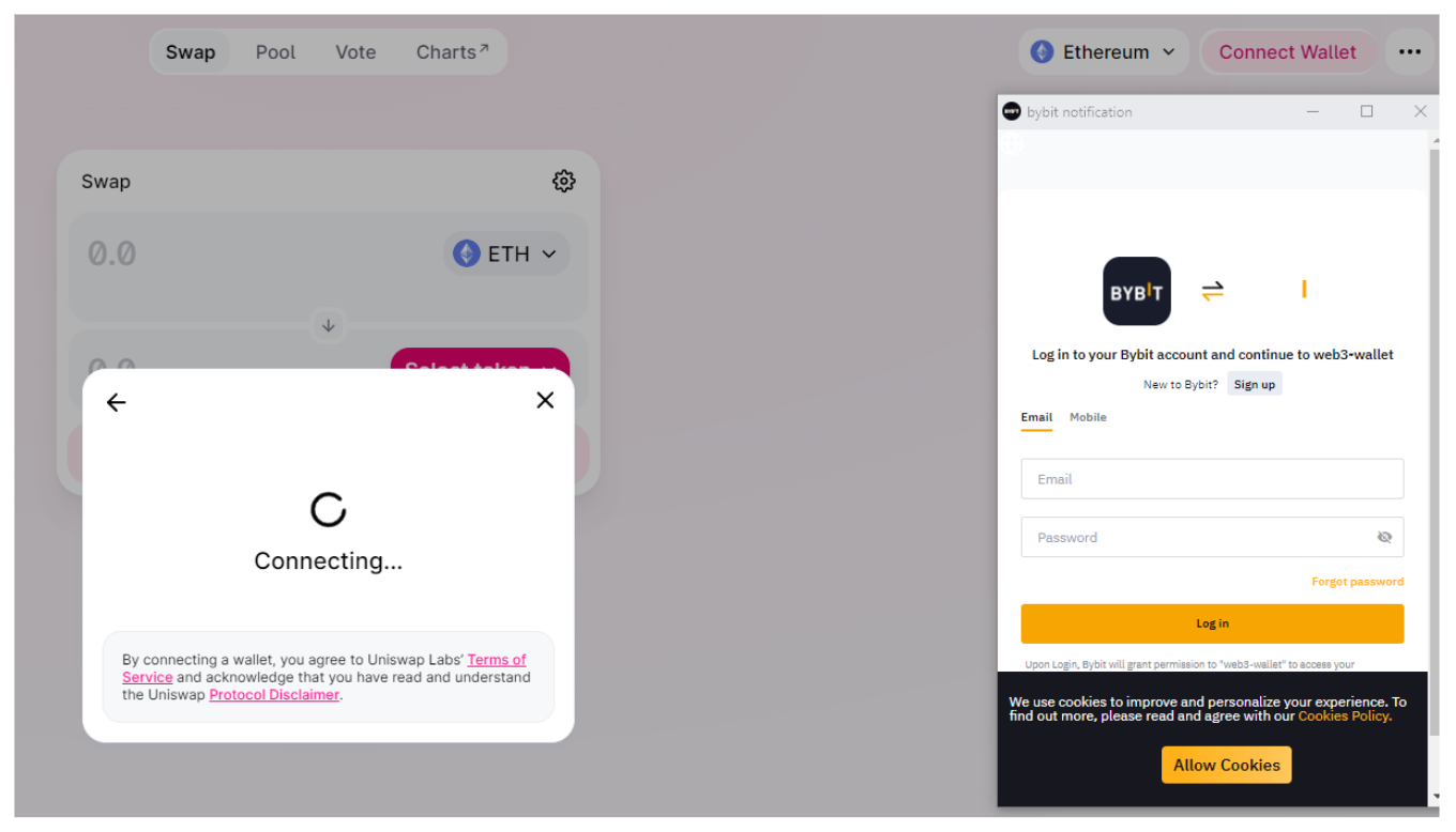 ステップ3:Bybit WalletがUniswapに接続中です。