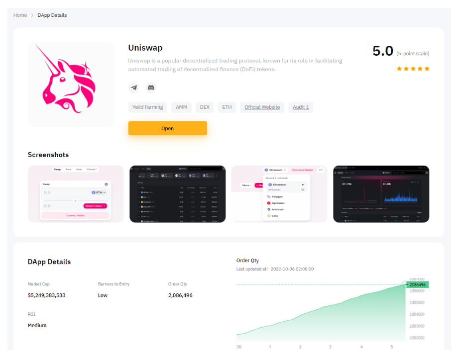 ステップ1:[Bybit Wallet]のホームページにある[主要なdApp]から[Uniswap]を選択します。次に[開く]をクリックしてUniswapインターフェースを開きます。