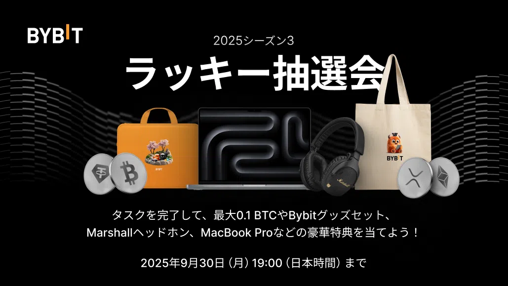 参加者全員、必ず当選!タスクを完了して、 BTC&XRPÐ&SOL特典やUSDTボーナス、Bybitグッズセット、Marshallヘッドホン、MacBook Proなどを当てよう!