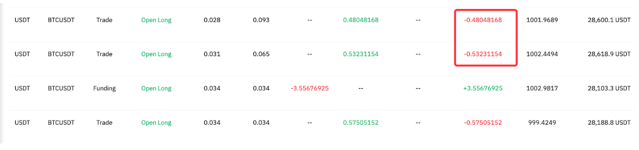 From here, we can see 0.57505152 USDT has been incurred as the trading fee.