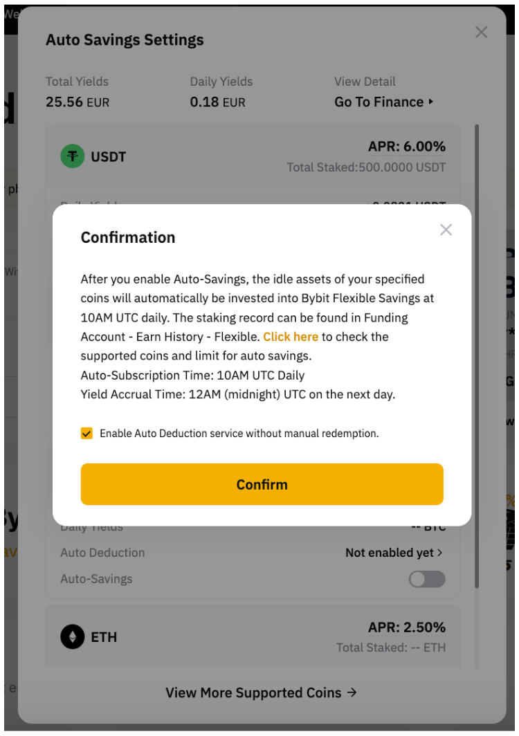 Plus, you can also earn compounding interest on your Flexible Earn (not available directly on the Easy Earn page) by enabling Auto-Deduction on the Bybit Card dashboard!