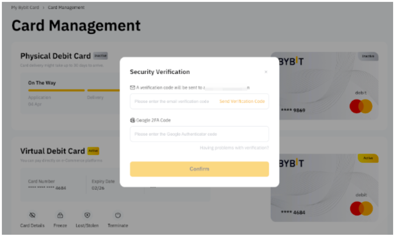 You can now manage both your virtual and physical Bybit Card on the Card Management page.