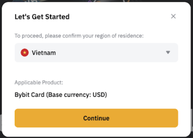 Note: Bybit Card is currently only available in limited countries. If your selected country of residence is not within the supported countries, we will register your interest now and inform you when Bybit Card is coming to your country.