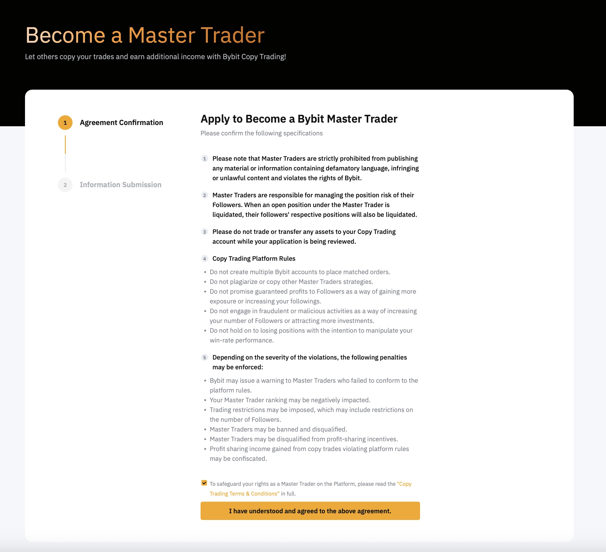 • Learn The Rules: Read Bybit Copy Trading Master Trader Agreement