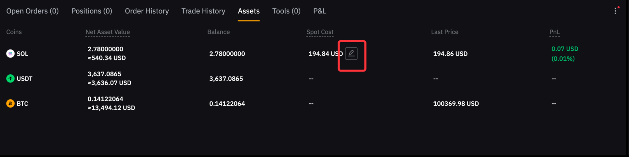2. Spot Cost will not be calculated for stablecoins or fiat currencies and will appear as "--" on the trading page.