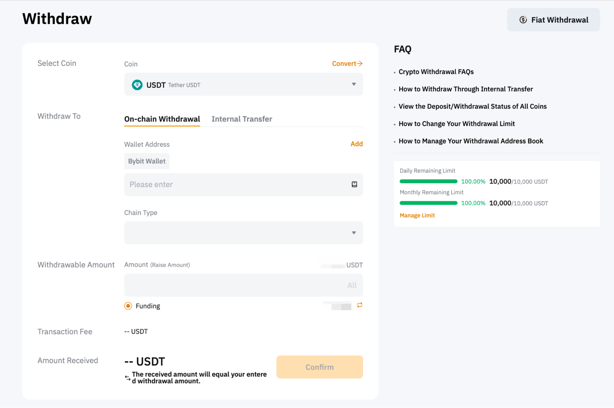 Here’s a step-by-step guide to help you submit an on-chain withdrawal request. For withdrawal via internal transfer, you can refer to here.
