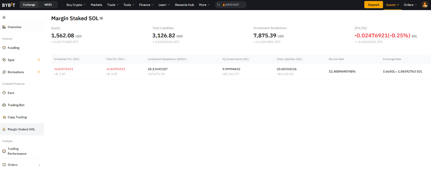 Alternatively, on the Margin Staked SOL Assets page, you’ll get an overview of your P&L, liabilities, etc.