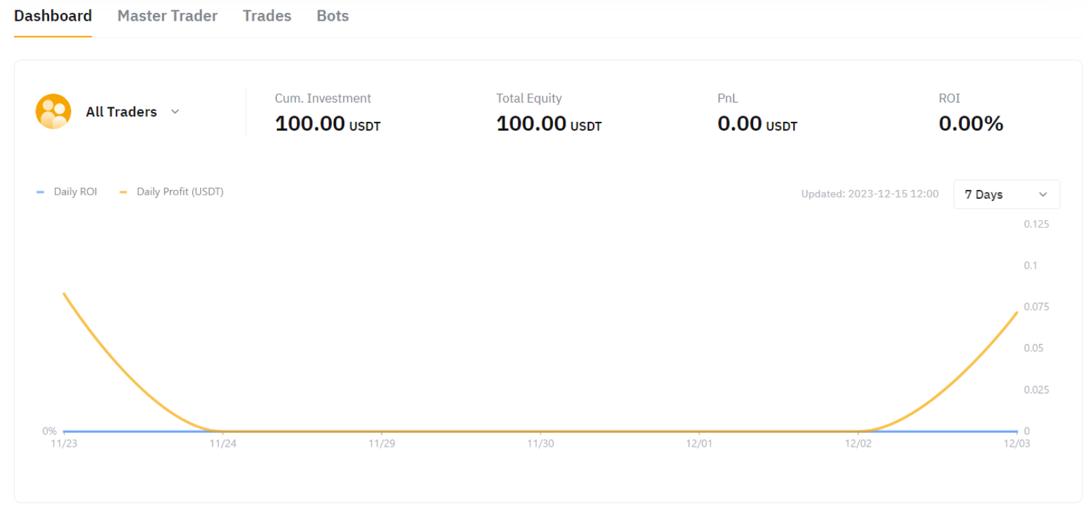 The performance of both USDT Perpetual Trades and trading bots created with Copy Trading is taken into account. For trading bots, currently, only Futures Grid Bot is supported.