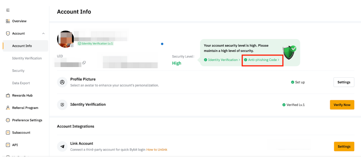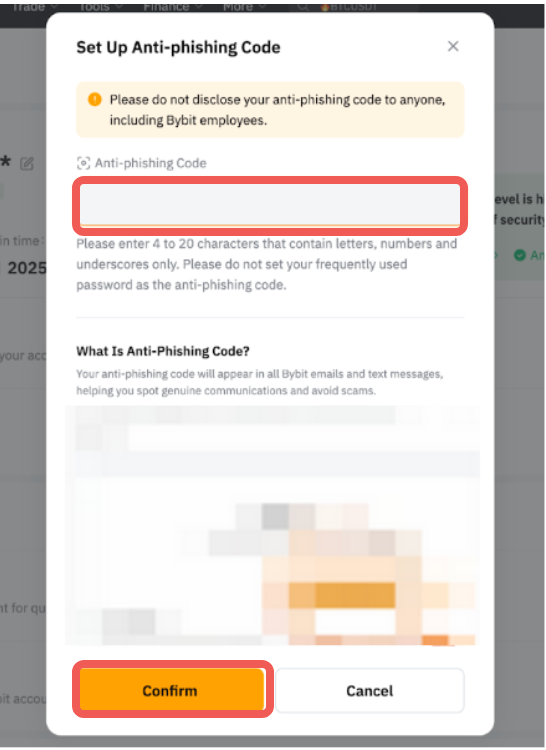 Here’s a guide to help you set up your Anti-phishing Code on Bybit.