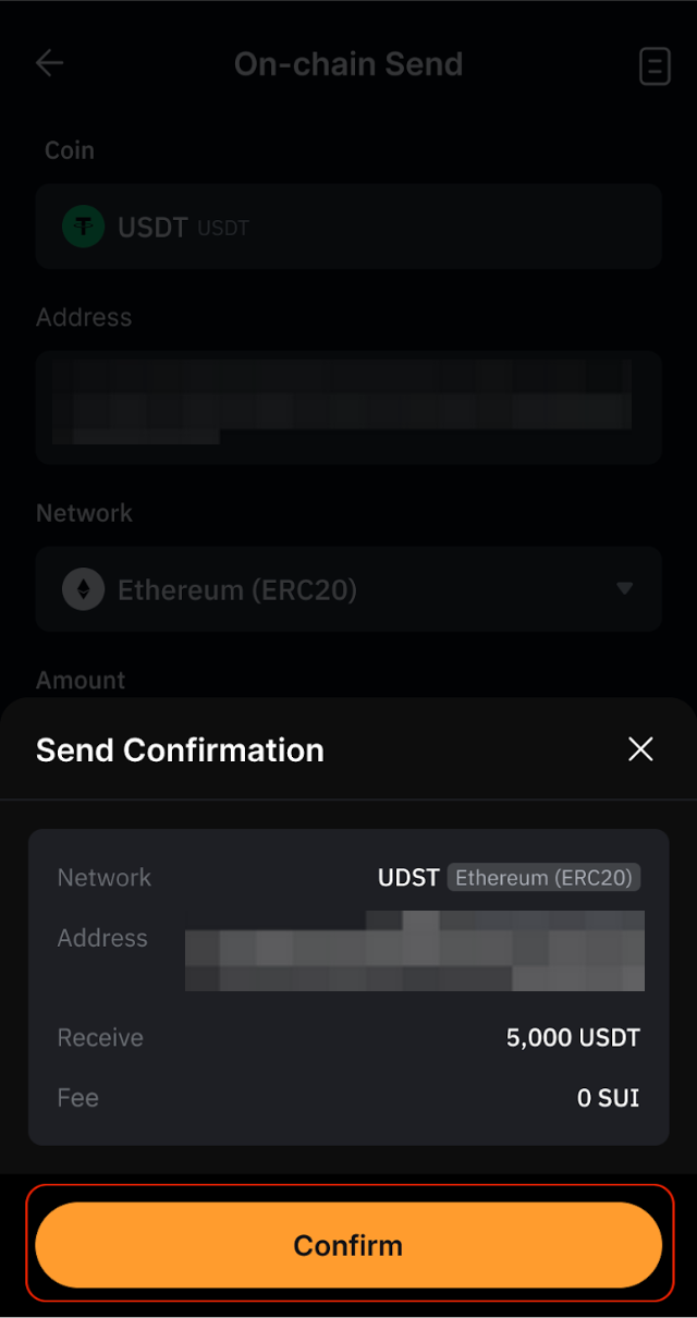 Etapa 5: Revise cuidadosamente todos os detalhes em Enviar confirmação para garantir que tudo esteja correto e, em seguida, toque em Confirmar para concluir a transação.