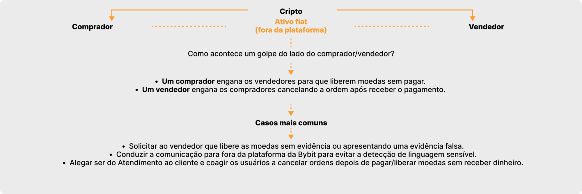 Os golpes de P2P em cripto ocorrem em trocas peer-to-peer (P2P) que conectam vendedores e compradores, em que a plataforma atua como um intermediário com um serviço de custódia para transferências. Os golpistas exploram essa configuração contornando o sistema de garantia, enganando os compradores com falsas alegações de não recebimento após o pagamento, violando assim a transação. Esses golpes lucram com a confiança inerente envolvida nas transações P2P, deixando usuários desavisados vulneráveis a perdas financeiras.