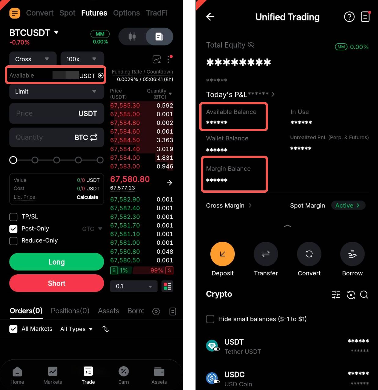 O saldo de margem só é relevante no modo de margem cruzada e margem de portfólio da CTU. É o valor total que pode ser usado como margem em sua conta, incluindo saldo da carteira e P&L não realizado de contratos perpétuos. Se o saldo da margem cair abaixo da margem de manutenção, a liquidação será acionada. Observe que o valor é um valor convertido após considerar o preço do índice de ativos e a proporção do valor de garantia, e não o valor real em USD mantido em sua conta.