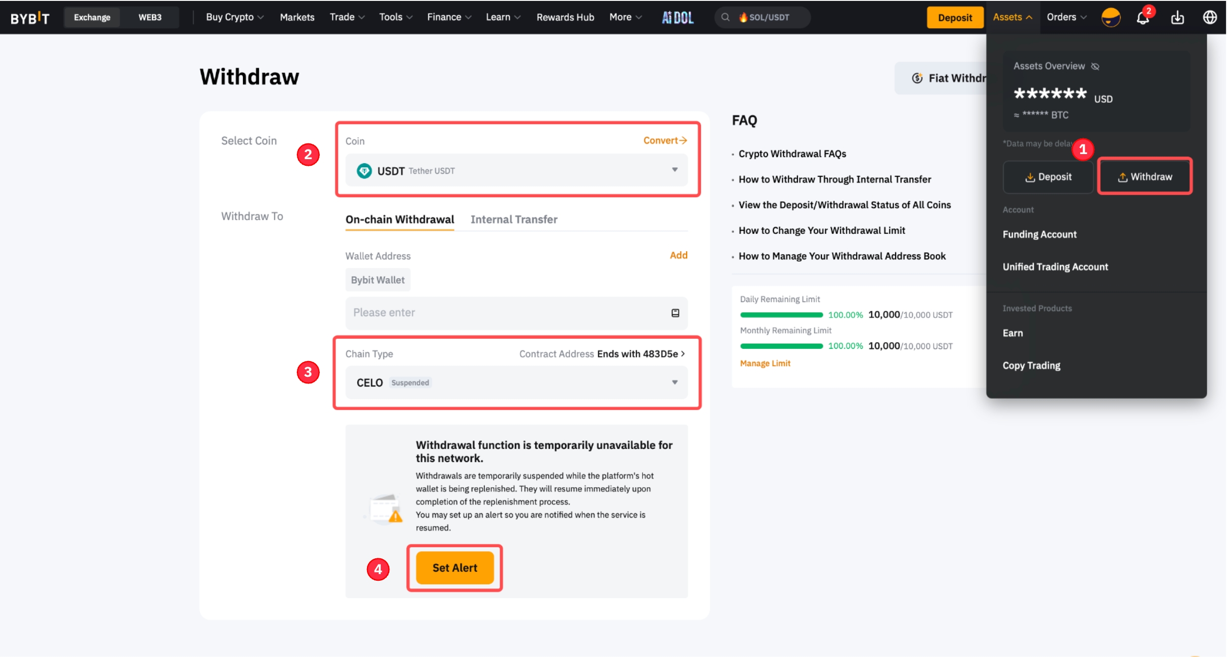 You can now set automatic alerts on the Withdrawal page by selecting the token and chain type of your choice and clicking on Set Alert