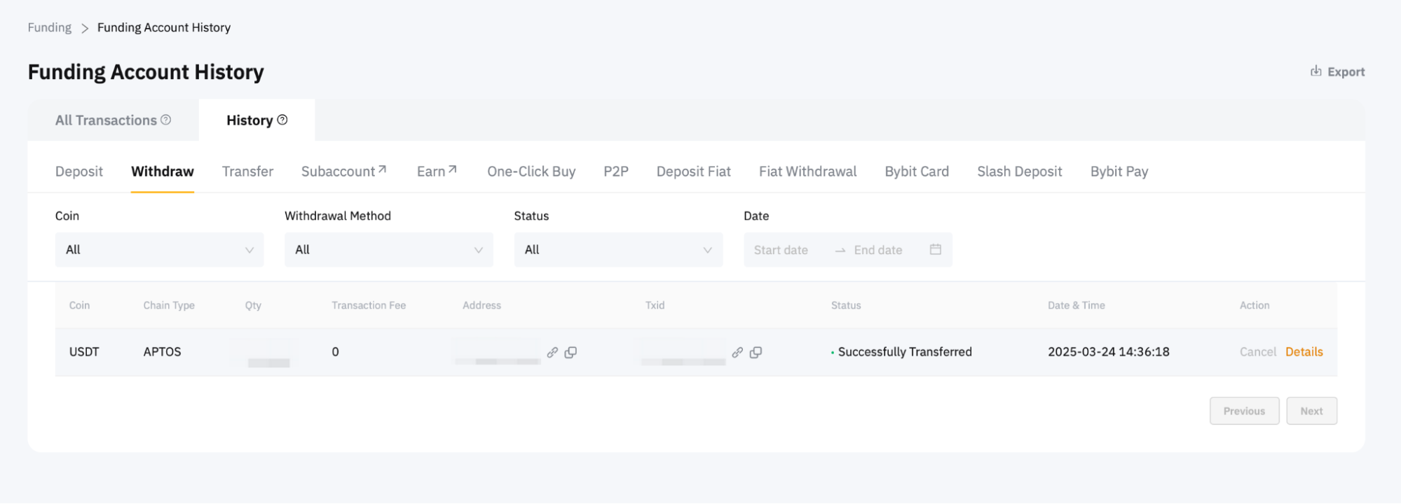Bybit charges a fixed fee for all withdrawals and dynamically adjusts the batch transfer miner fee to a higher level to ensure faster confirmation speeds of withdrawals on the blockchain.