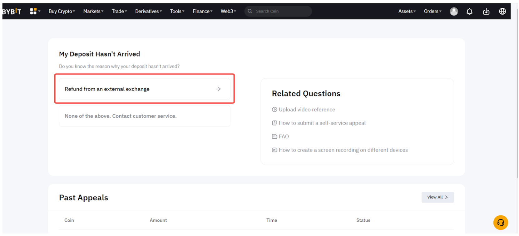 Bybit now provides self-service appeal support for users who have received refunds from another exchange platform and wish to credit the refunded amount into their Bybit Funding Account.
