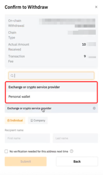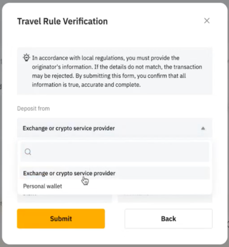 Step 3: If you make withdrawals to VASP, you may click on the Submit button to submit your withdrawal request. Once the verification is passed, your withdrawal will be processed.
