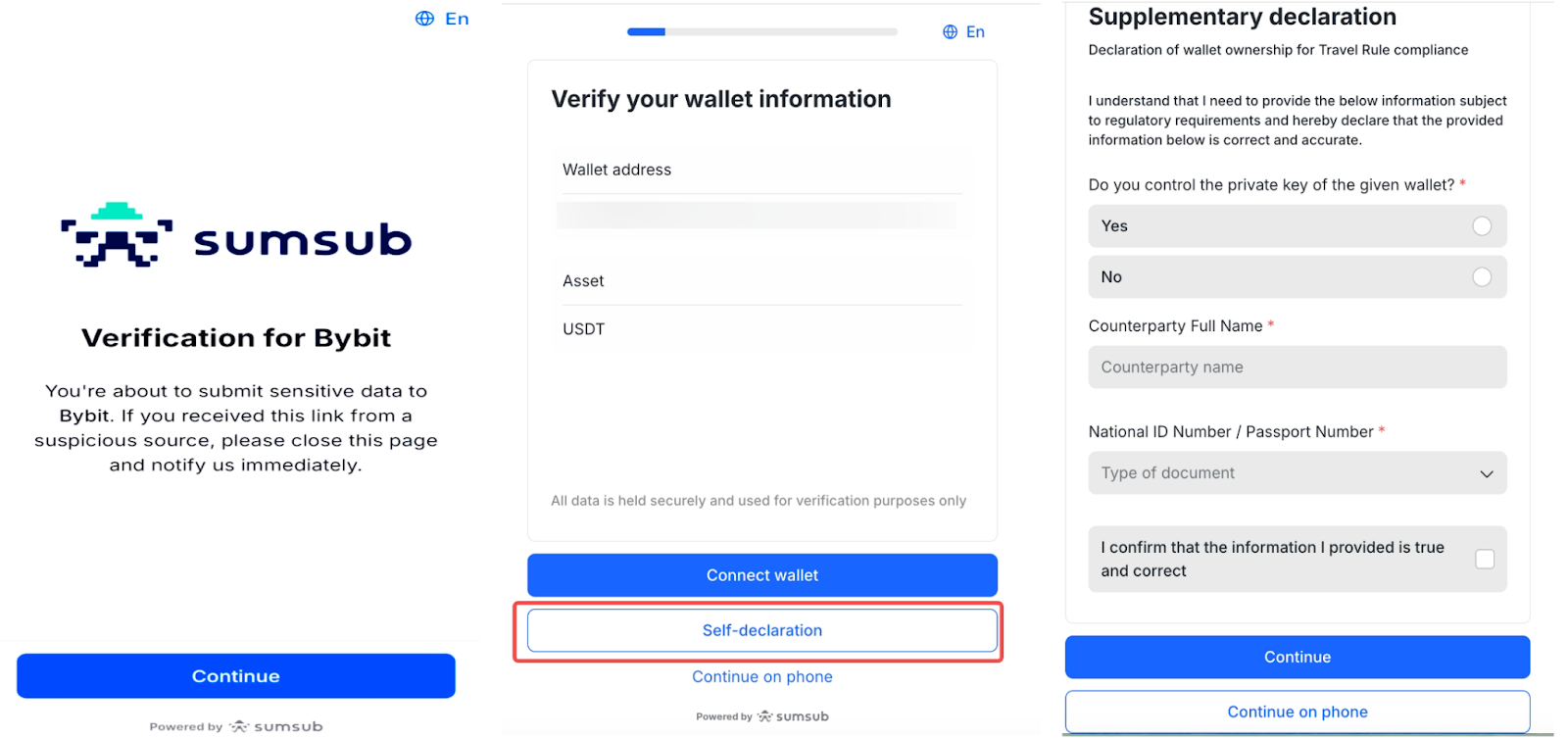 You need to complete the wallet address verification by entering the sender’s information.