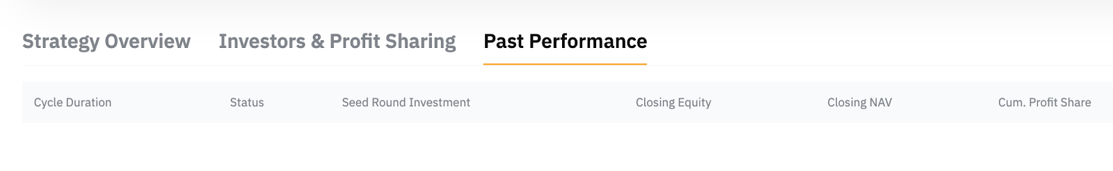 Тут ви можете відстежувати історичні показники результативності стратегії.