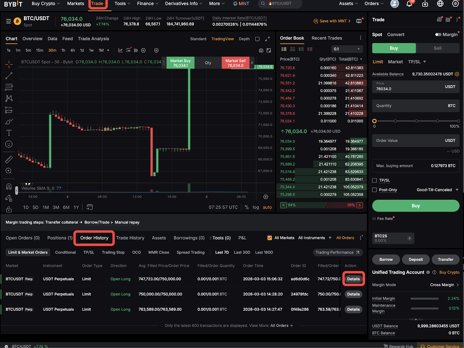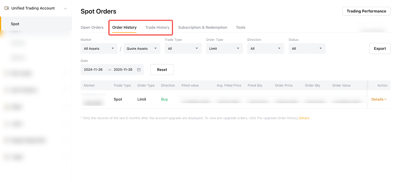 На вебсайті: Перейдіть на сторінку Єдиний торговий ордер і натисніть Історія ордерів, щоб переглянути всі ваші записи.