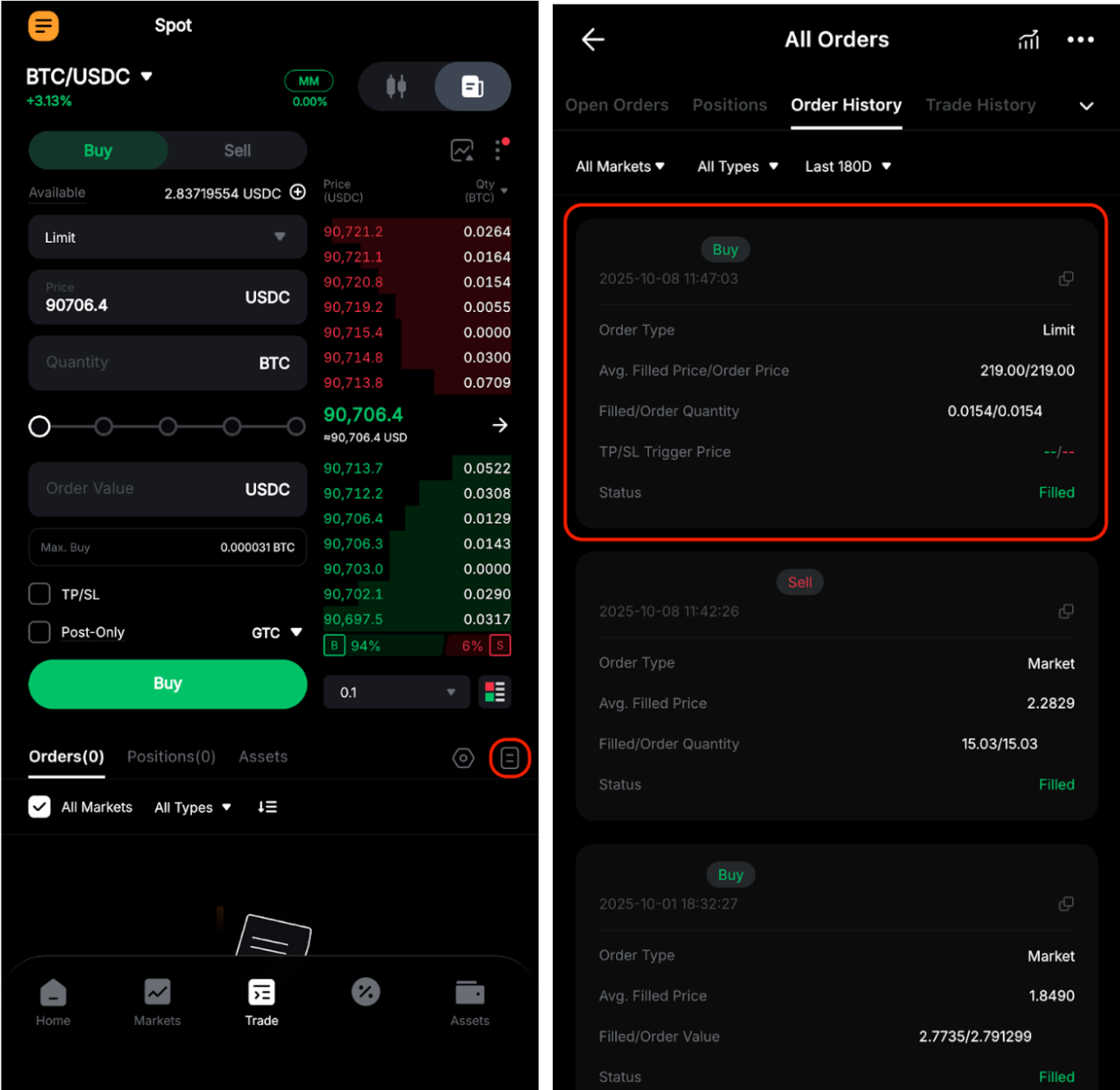 Як переглянути мою історію ордерів