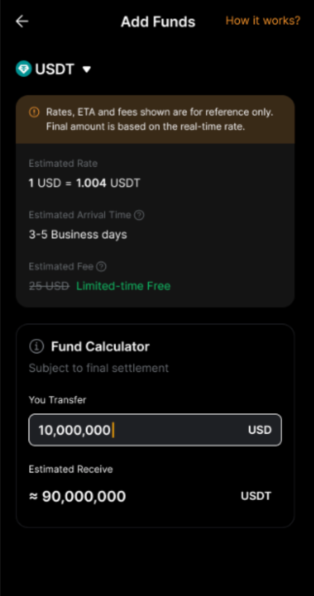 Tỷ lệ giao dịch giữa USD và USDT/USDC thường duy trì gần mức 1:1 nhưng có thể biến động nhẹ tùy thuộc vào điều kiện thị trường. Tỷ lệ cuối cùng sẽ dựa trên tỷ lệ giao dịch mới nhất trên nền tảng của chúng tôi.