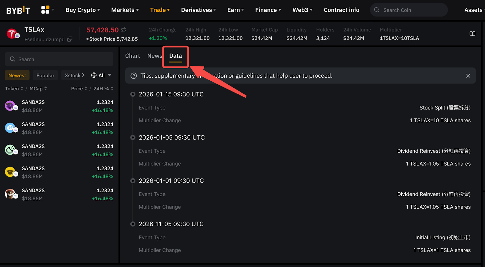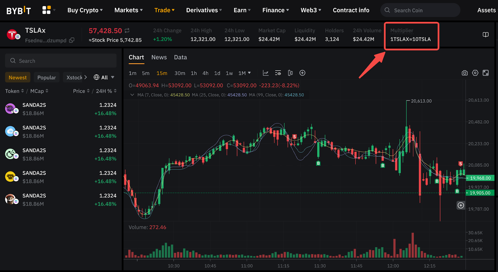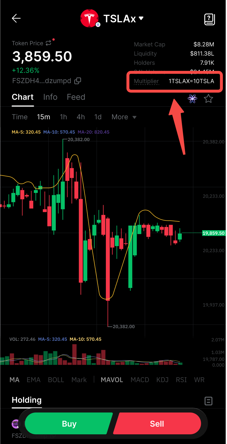 Nếu bạn đang sử dụng Bybit App, hãy truy cập trang giao dịch xStocks và tìm phần Hệ Số Nhân Hiện Tại gần thông tin giá (phía trên biểu đồ).