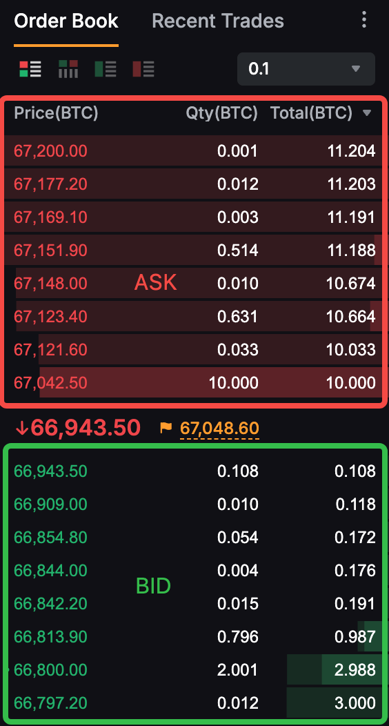 - Giá khớp lệnh: 67.042 USD (Lệnh sẽ được khớp ở mức giá tốt nhất hiện có cho đến khi đáp ứng đủ số lượng hợp đồng hoặc cho đến khi đạt mức 67.080 USD, tùy điều kiện nào đến trước.)