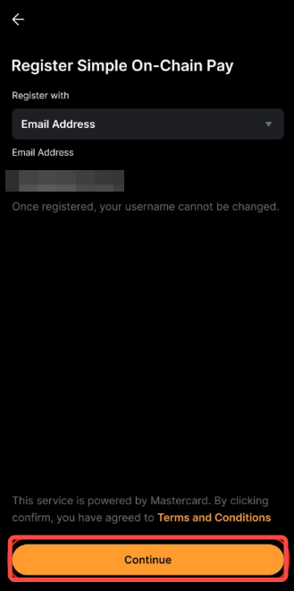 Bước 3: Chọn Email hoặc Số Điện Thoại Di Động, sau đó nhấn vào Tiếp Tục để lưu dưới dạng Thông Tin Đăng Nhập Crypto Mastercard.