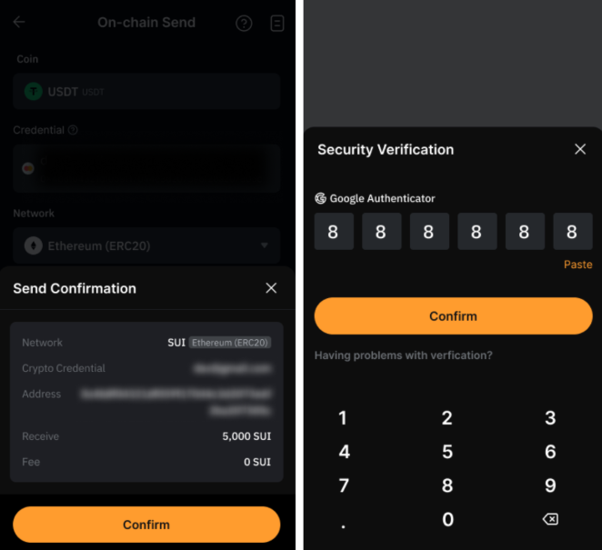 Bước 5: Xem lại chi tiết giao dịch của bạn trước khi nhấn vào Xác Nhận và nhập mã Google Authenticator để hoàn thành yêu cầu.