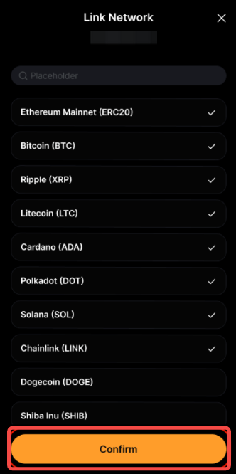 Bước 3: Chọn các mạng được giới thiệu của bạn và nhấn vào Xác Nhận để tiếp tục. Bybit sẽ tự động đề xuất các mạng bạn thường sử dụng nhất.