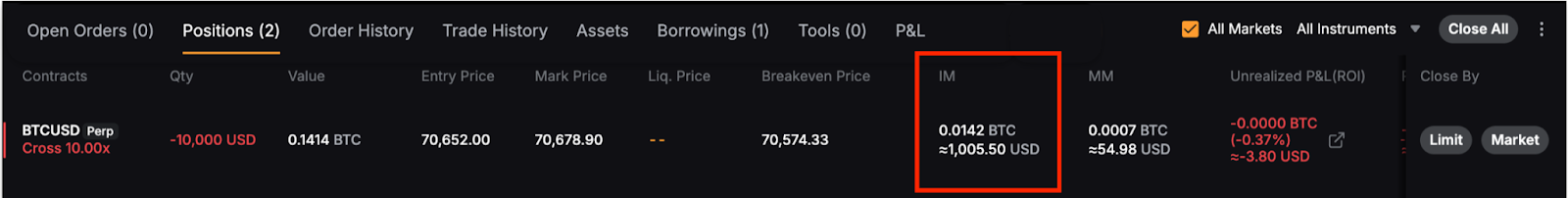 Lưu ý, ký quỹ ban đầu hiển thị trong tab vị thế bao gồm phí taker, có thể phát sinh khi đóng vị thế.