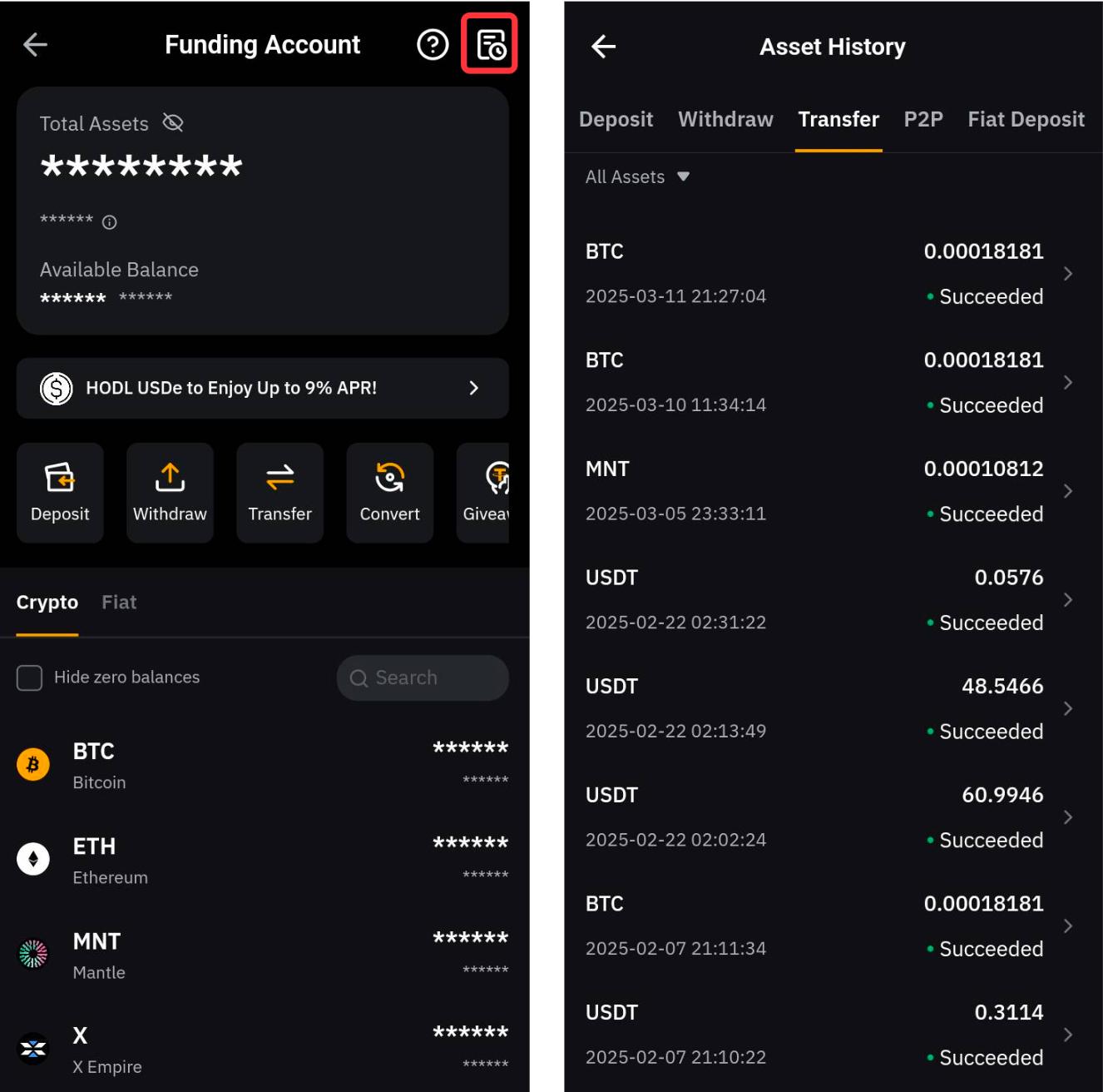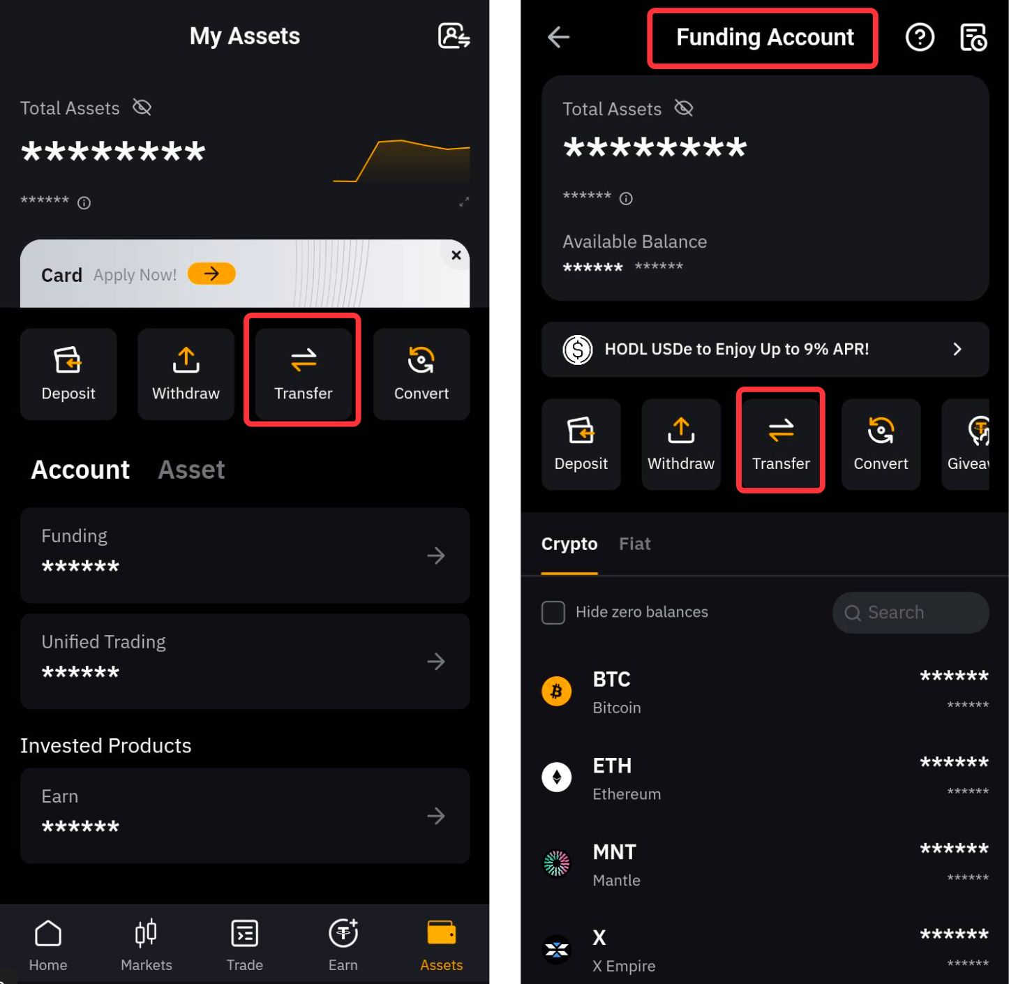 第 2 步:在资产页面上,您可以通过以下两种方式划转资产: