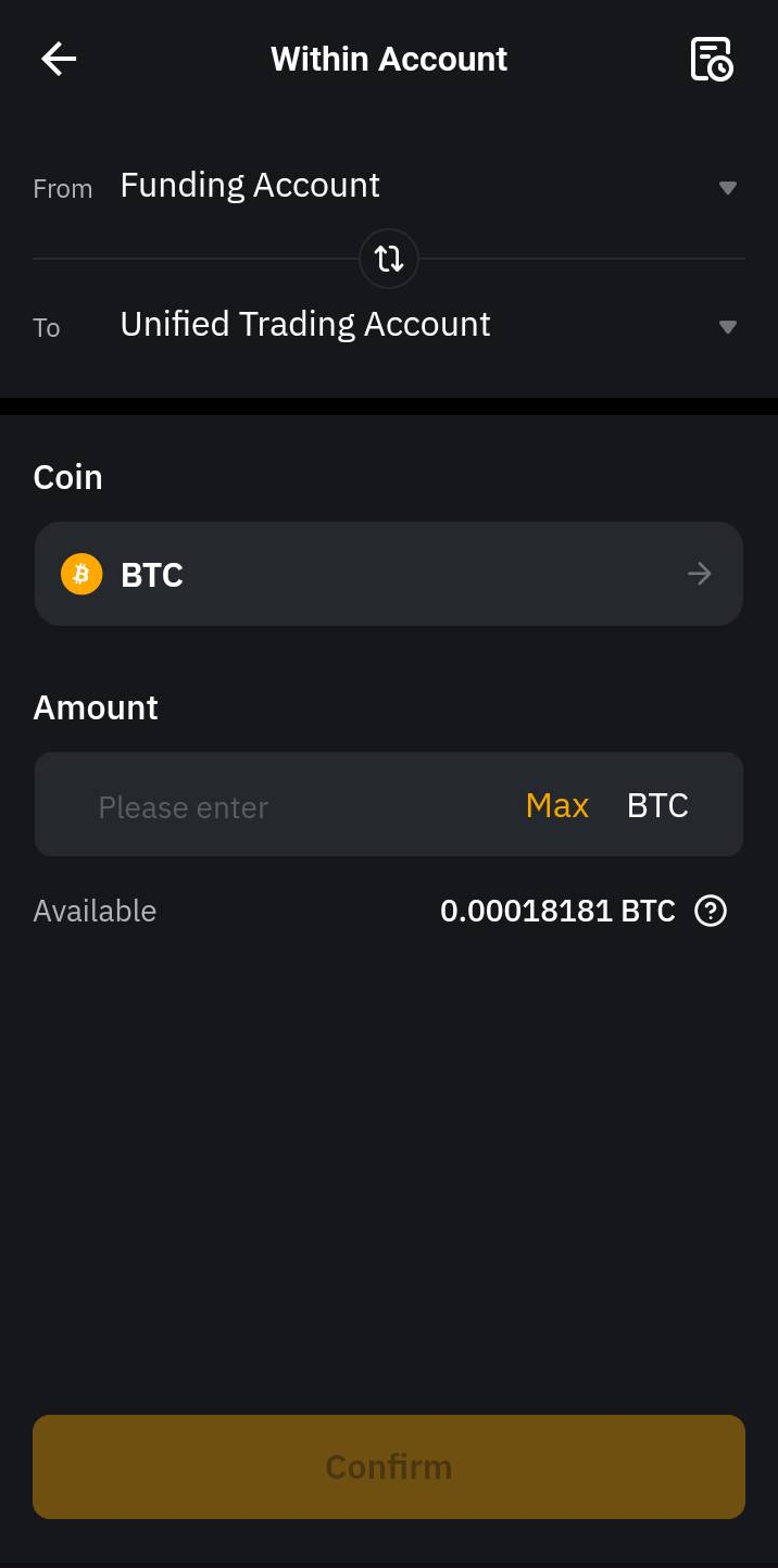 以下详细指南可帮助您在 Bybit 资金账户和统一交易账户之间划转资产。